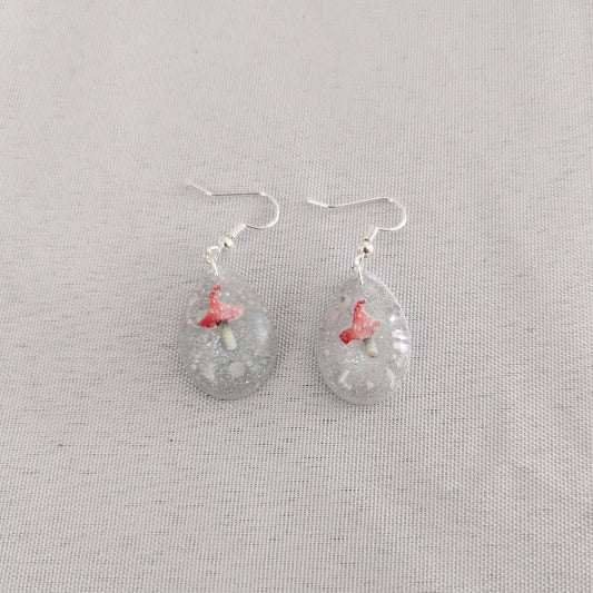 Earrings - Resin Teardrop Mushroom on Sterling Silver 925 hook