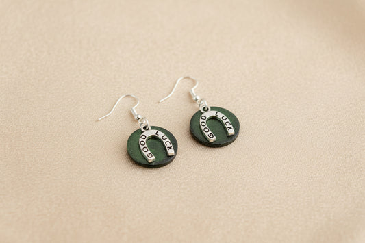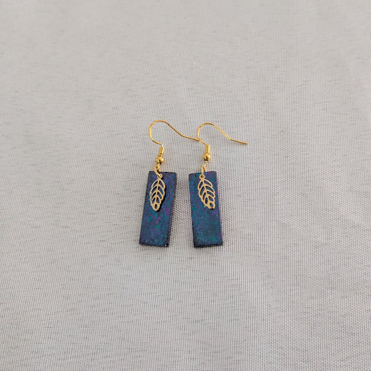 Earrings - Resin medium rectangle with gold leaf charm on hook