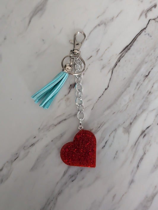 Heart Resin Keychain & Purse Accessory with Suede Tassel