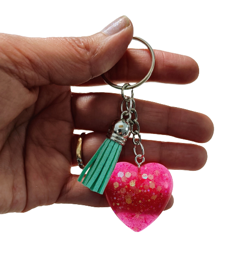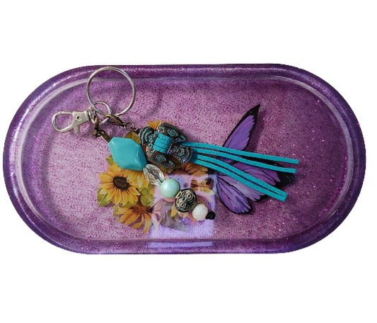 Keychain - Bronze bird teal tassel with teal clear and white beads