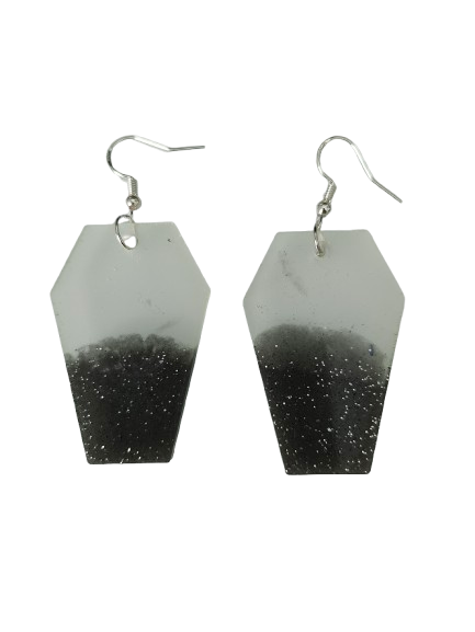 Earrings - Black & White pattern glitter faux leather stingray on silver hook