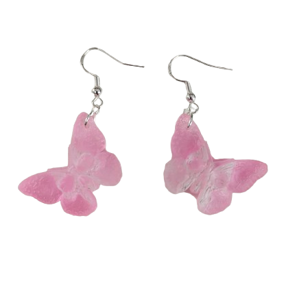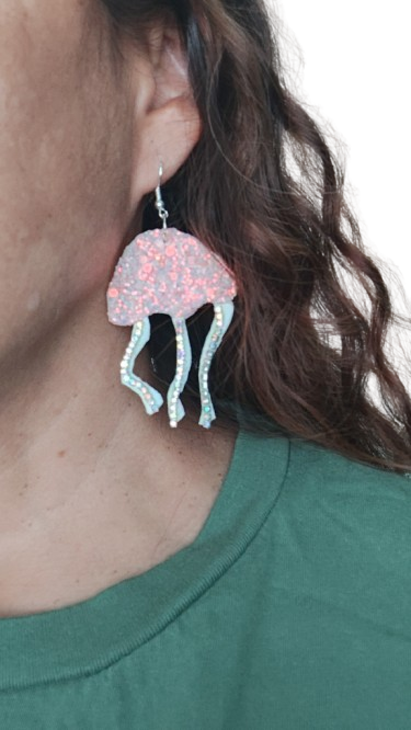 Earrings - Pink glitter faux leather Jelly Fish on silver hook