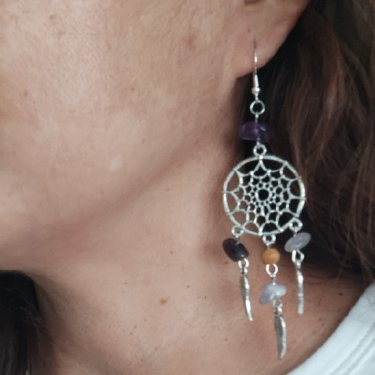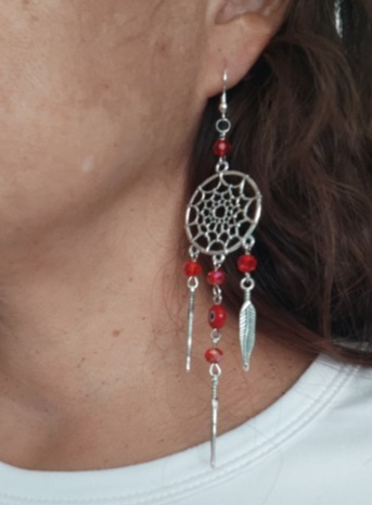 Earrings - Dream catcher with glass beads and silver wings on hook