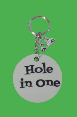 Keychain - Double sided sublimated Hole in one and golf cart silver charm