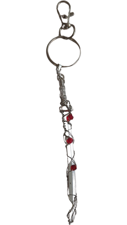 Keychain - Double sided sublimated white snowflake with red background image and two jingle bells