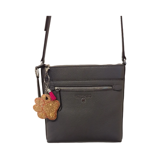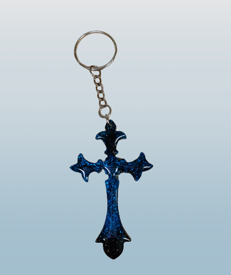 Keychain - Basketball purple and gold resin rectangle with basketball and net silver charm