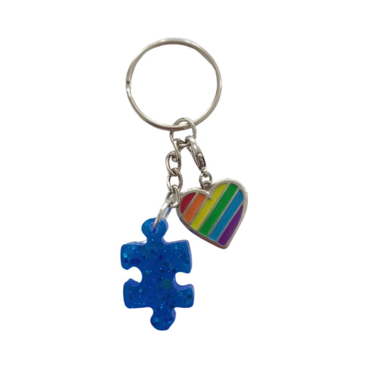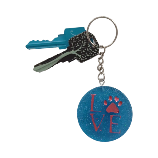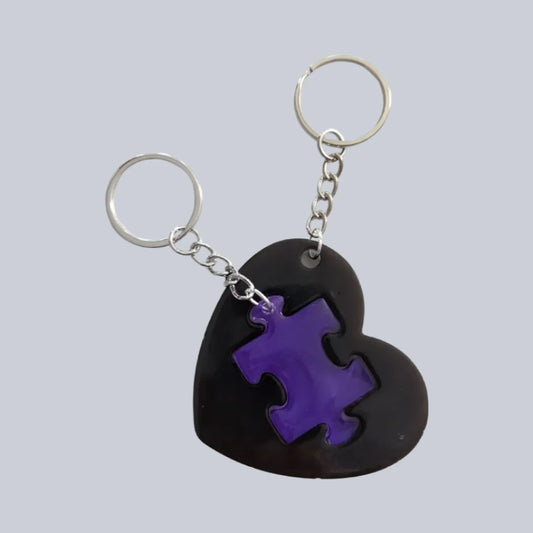 Keychain - Basketball purple and gold resin rectangle with I love basketball silver charm
