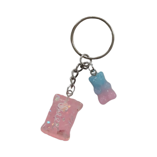 Keychain - Gummy Bear and Sweet Candy Charm on Silver Chain