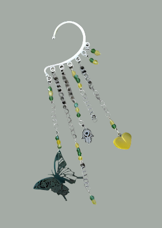 Earrings - Ear Cuff Non Pierced Wrap Earrings With 5mm round cable chain (Butterfly, hansa evil eye, resin heart)