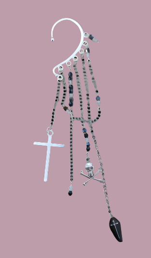 Earrings - Ear Cuff Non Pierced Wrap Earrings with stainless steel curb chain (Cross, Skull, Coffin)