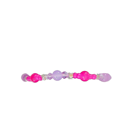 Bracelet - Medium 7.5 inches Elastic hot pink & light pink 6mm glass beads and 4mm bicone beads and seed beads with silver spacer beads
