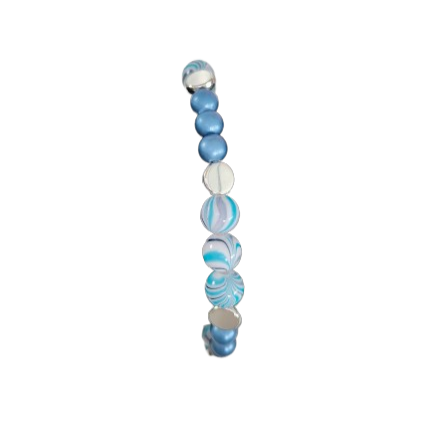 Bracelet - Small 6 inches Elastic blue 8mm beads & blue 4mm bicone beads with silver spacer beads