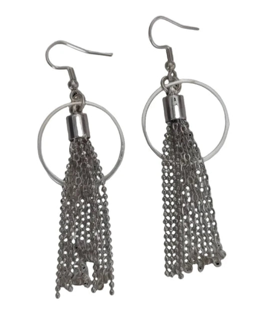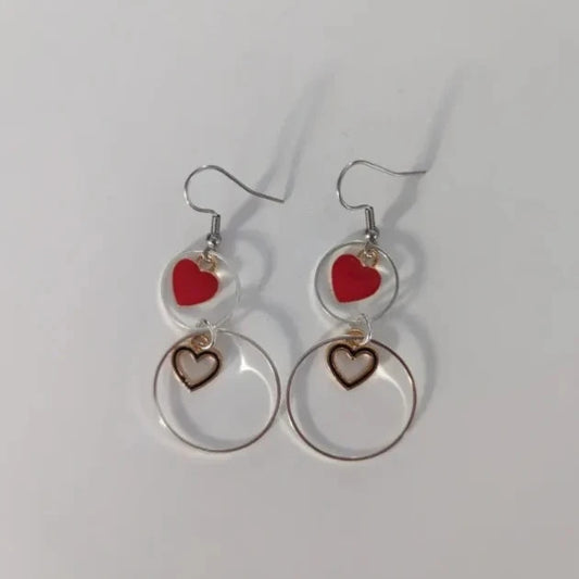 Earrings - One 1 inch silver circle and One 1/2 inch silver circle with 1 solid gold plated heart and 1 hollow gold plated heart on silver hook