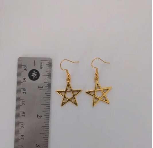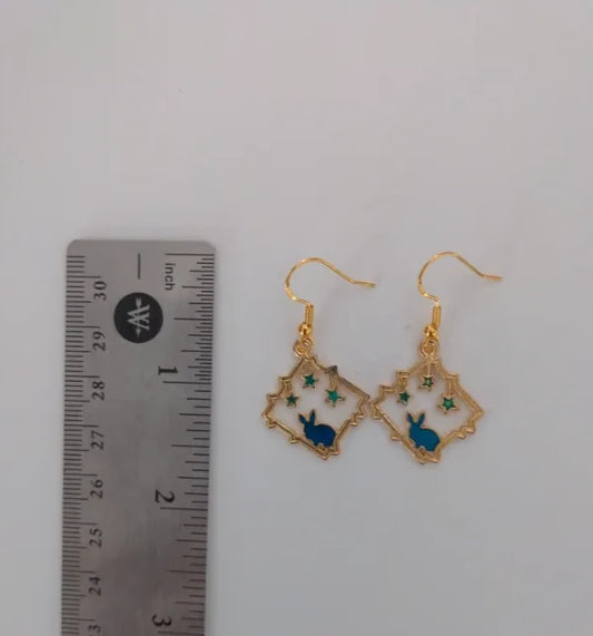 Earrings - Gold plated white/blue moon with gold star charm on gold hook