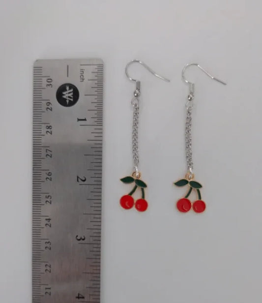 Earrings - Tear drop that opens with gold plated cherries on hook