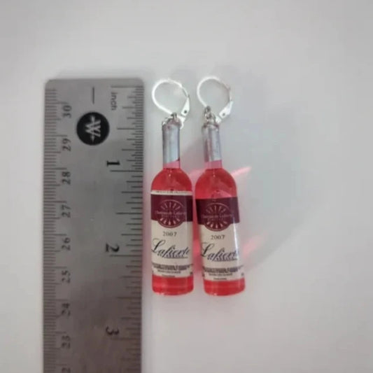 Earrings - Resin Wine Bottle Charm on Lever Back Hoop French Hook