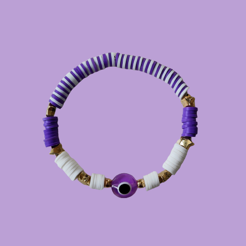 Bracelet - Small 6.5 inches elastic evil eye with clay beads and gold spacer beads