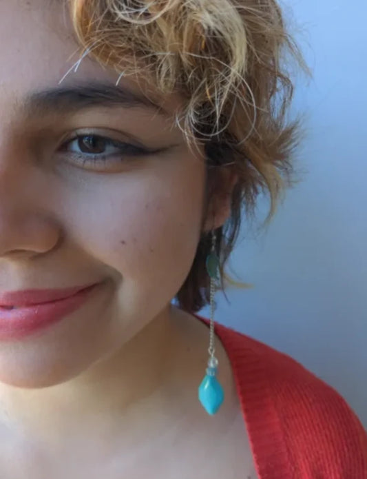 Earrings - Blue and White Silver Jingle Bell Drop Hook