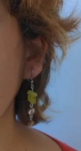 Earrings - Yellow Crystal Bead and Brown Bead Hook