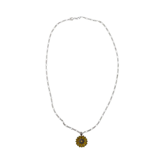 Necklace - 17.5 inches 925 silver figaro chain with sunflower charm