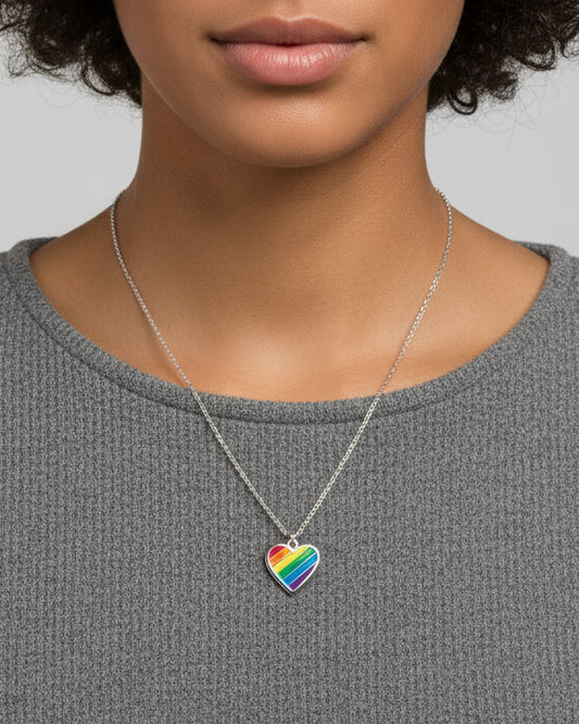Necklace - 17.5 inches 925 silver link chain with rainbow heart charm