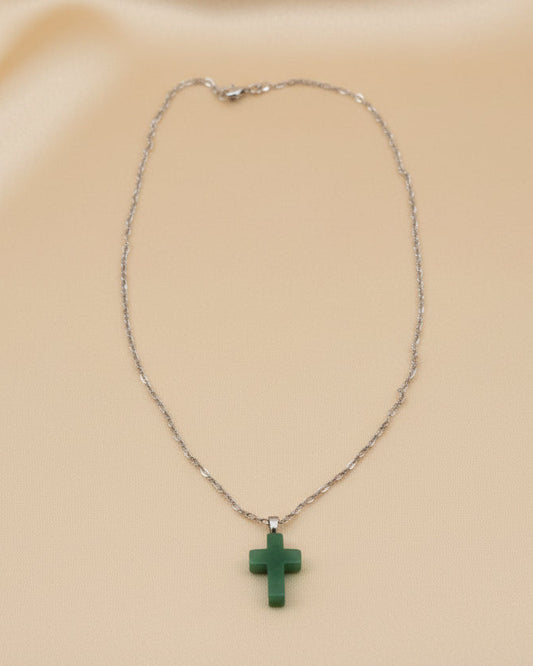 Necklace - 19 inches 925 silver chain with gemstone cross pendant