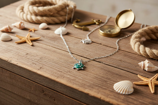 Necklace - 19 inches 925 silver paperclip chain with turtle charm