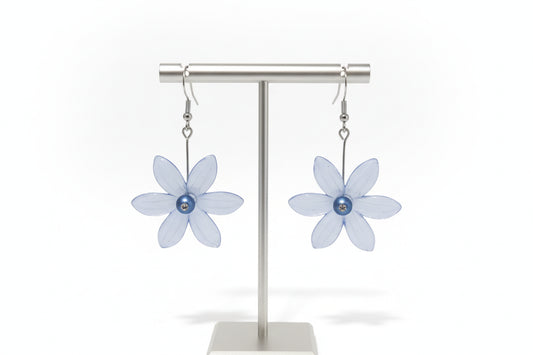 Earrings - Half Resin Walnut Wood Post Stud Earrings Geometric Natural Wooden Trapezoid with flower charm