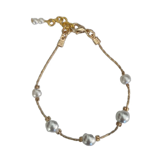 Bracelet - 7 inches Crystal pearl bead on gold chain Bracelet