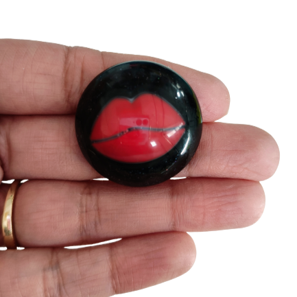 Pin - 3D resin red lips pin with silver butterfly clutch