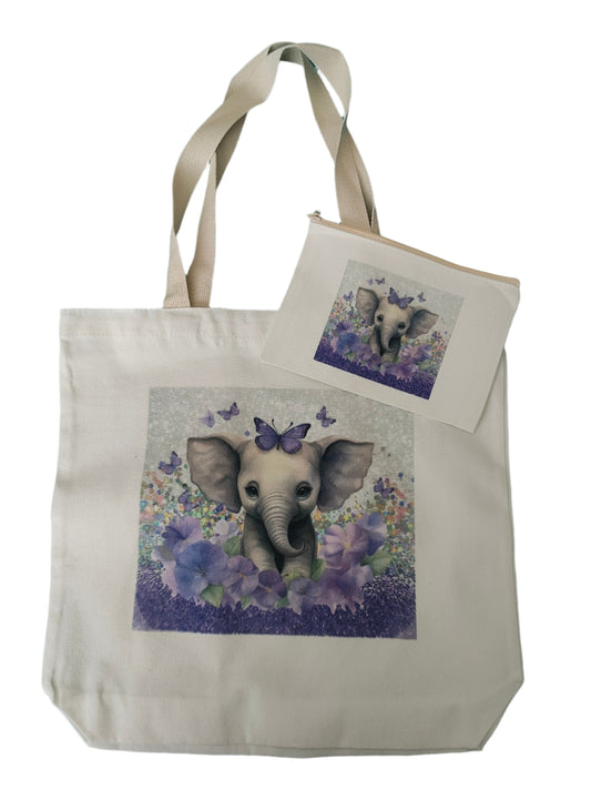 Double sided tote Bag with makeup bag (animal image)