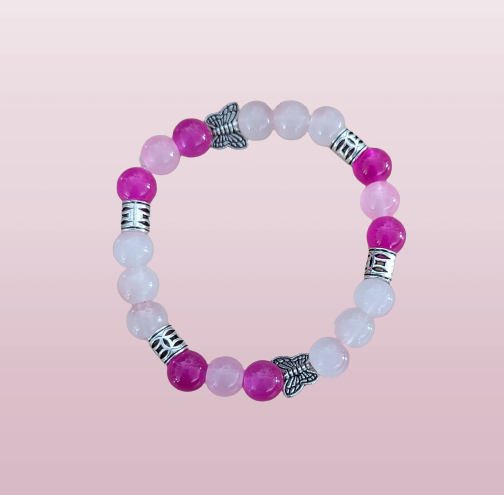 Bracelet - Elastic Pink 8mm glass beads with silver metal spacer beads