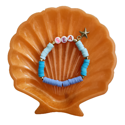 Bracelet - Elastic "Sea" with colorful clay beads and gold spacer beads and a starfish charm
