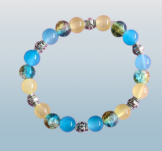 Bracelet - Small 6 inches Elastic 8mm glass beads with silver metal spacer beads