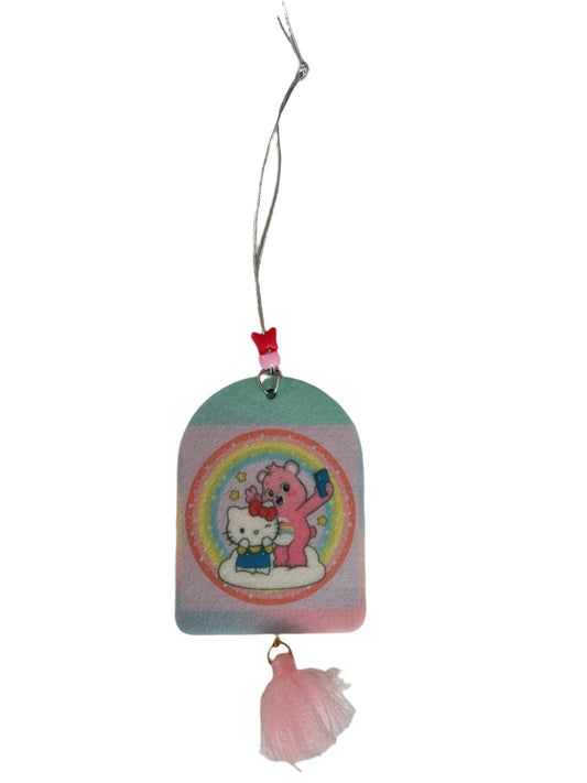 Car Ornament - Double sided round top rectangle pink care bear & Hello Kitty