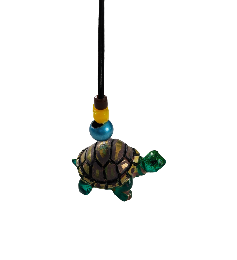 Car Ornament - Double sided round top rectangle Sea turtles with pink flowers