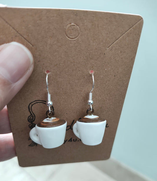Earrings - Coffee mug charm on silver hook