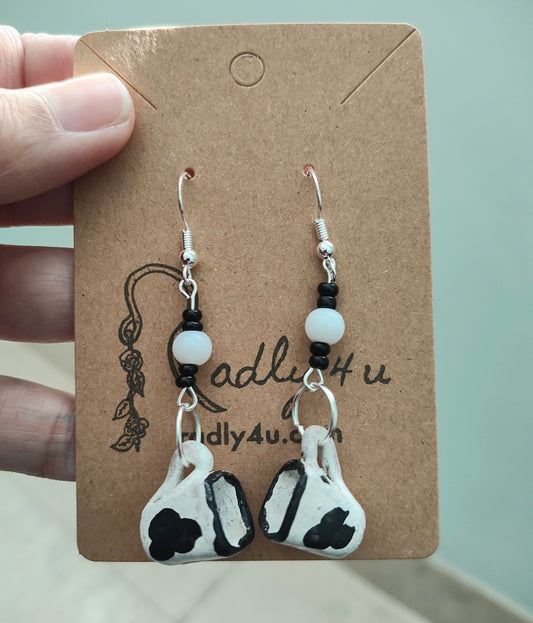 Earrings - Cow mug with beads on silver hook