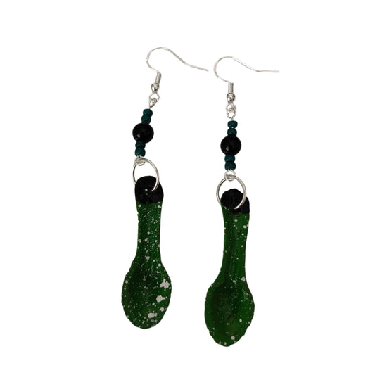 Earrings - Ceramic spoon with beads on silver hook