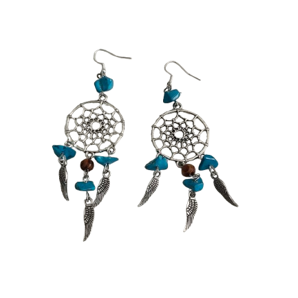 Earrings - Dream catcher with glass beads and silver wings on hook