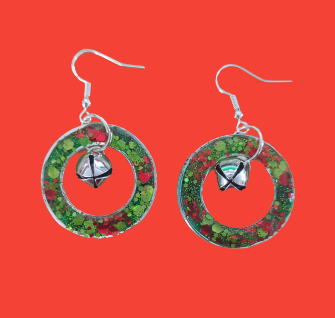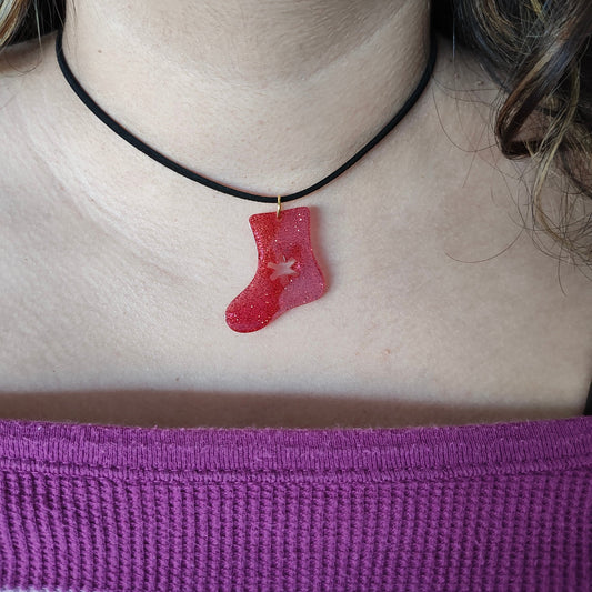 Necklace - 15.5 inches black suede cord with resin holiday pendant