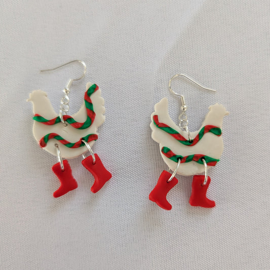 Earrings - Polymer Clay Polymer Clay Chicken with boots on 925 sterling silver hook