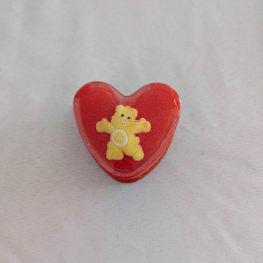 Resin Heart Jewelry Box - Double Heart Dish with Faceted Bear Topper