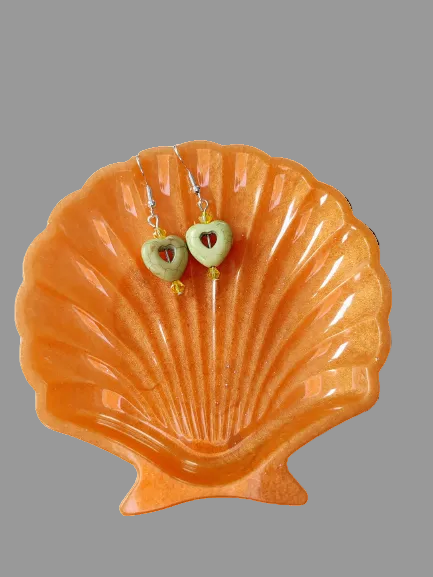 Earrings - Heart bead with 4mm crystal beads on hook