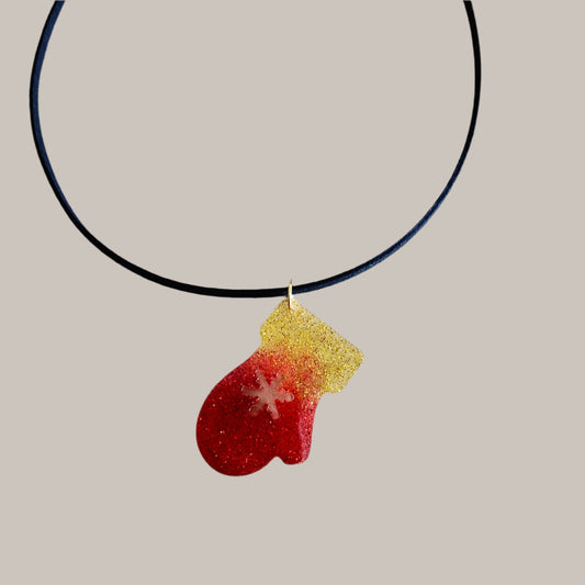 Necklace - 19.5 inches black suede cord with resin holiday pendant