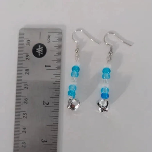 Earrings - Blue and White Silver Jingle Bell Drop Hook