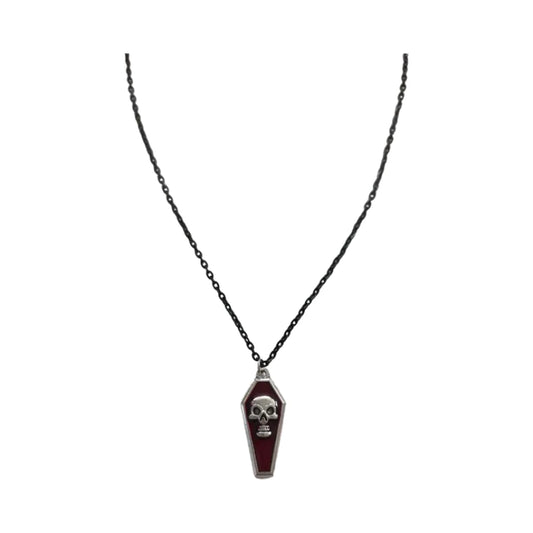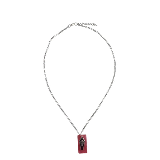 Necklace - 24.5 inches red glitter resin rectangle with coffin charm on stainless steel curb chain
