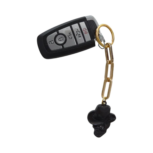 Keychain - Black skull with hat on gold aluminum Paperclip Cable Chain