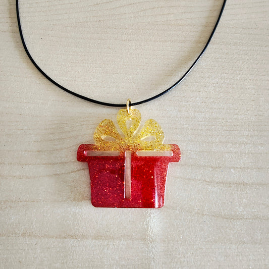 Necklace - 18 inches 0.5 mm black polyester cord with resin holiday pendant