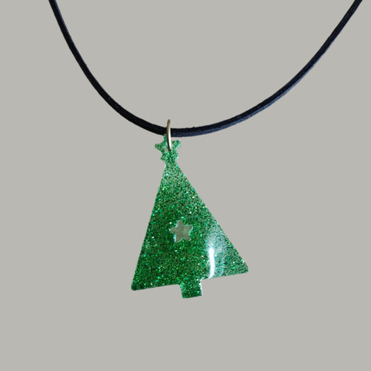Necklace - 13.5 inches black suede cord with resin holiday pendant